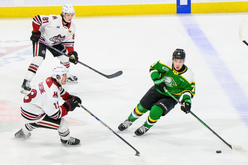 With London’s 6-2 win over Guelph Wednesday night, and Sault Ste. Marie’s loss to Saginaw, the Knights leapfrogged the Greyhounds for the fourth spot and home-ice advantage in the first round — at least for now.