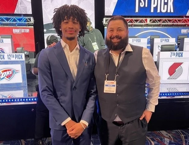Sewell works with London-born Shaedon Sharpe, who was drafted 7th overall in the most recent NBA Draft. (Photo courtesy Dave Sewell).